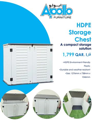 A compact storage solution. HDPE Environment Friendly Plastic. Durable and weather resistant.