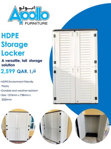 A versatile tall storage solution. HDPE Environment Friendly Plastic. Durable and weather resistant.